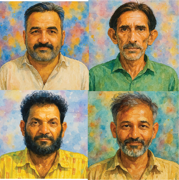 A magical crew of four—fueled by raw rhythm, bound by shared grit and creative fire. Their love for the craft isn’t just deep, it’s unshakable. While the world hums with machines and shortcuts, they choose the long road. The one paved with calloused hands, ink-stained palms, and a cheeky splash of soul.