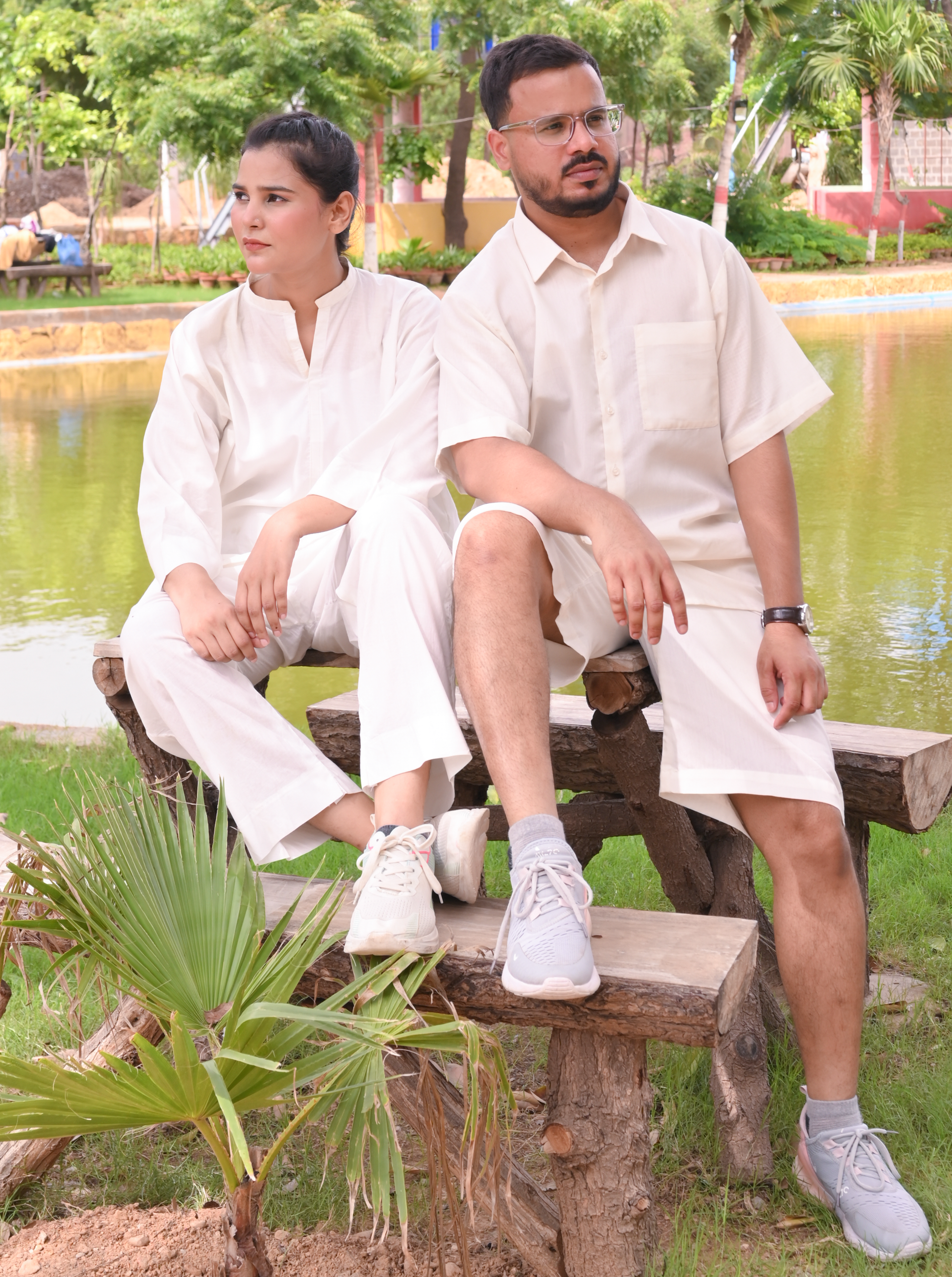 A perfectly paired moment in crisp white co-ords clean, calm, and effortlessly in sync.