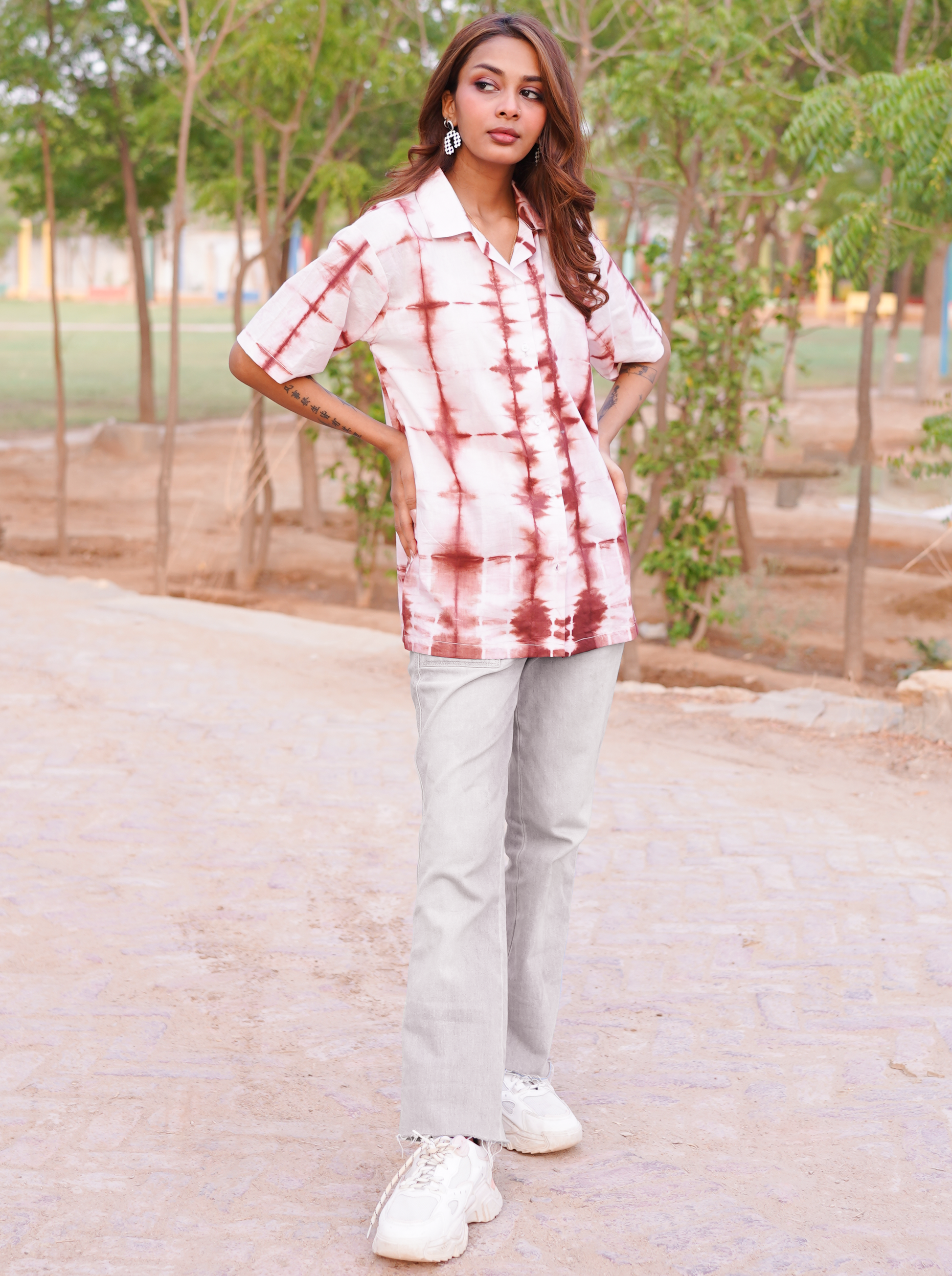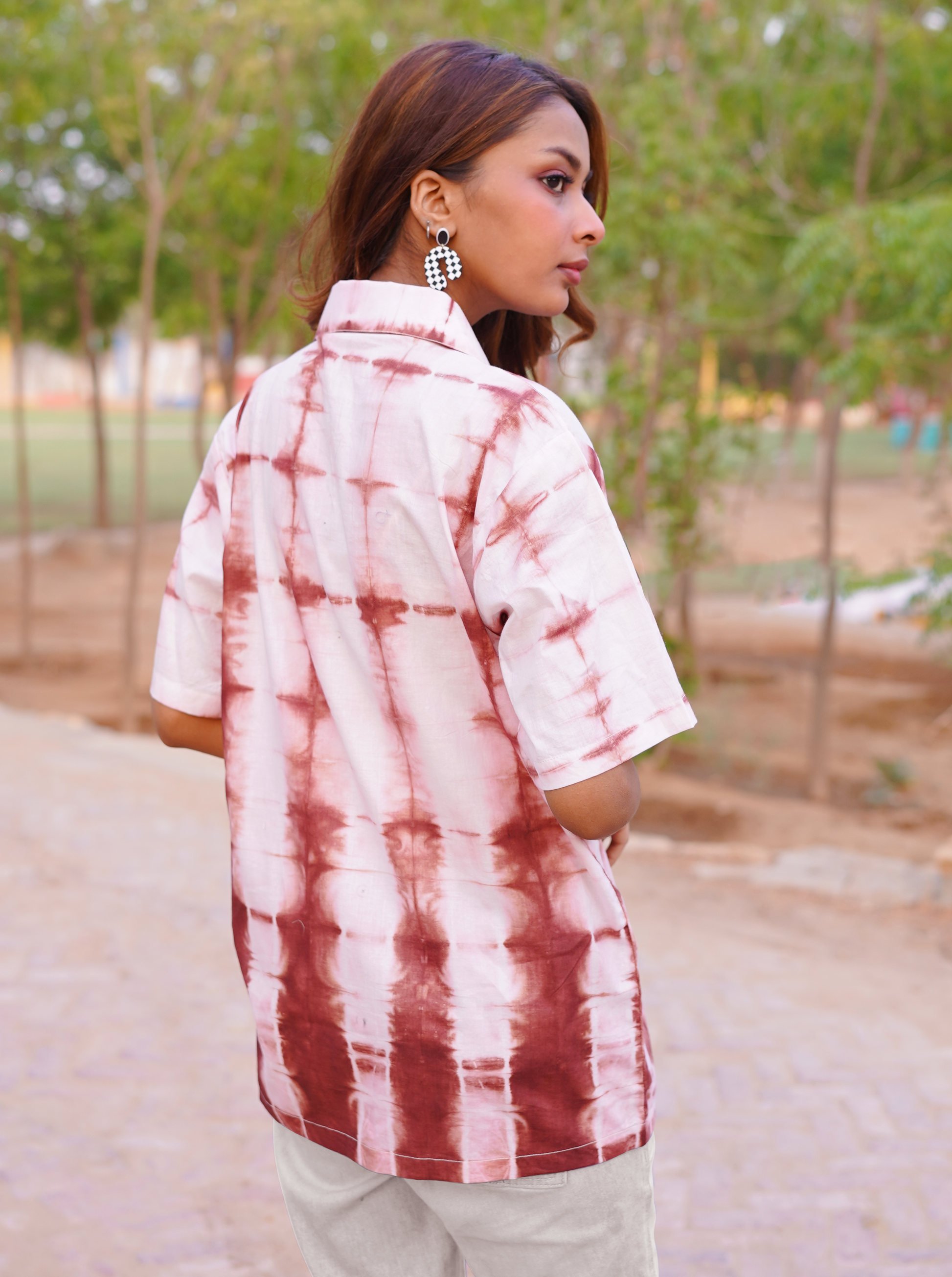 Itajame Brown Tie & Dye - Women Relaxed Fit Button Down Shirt